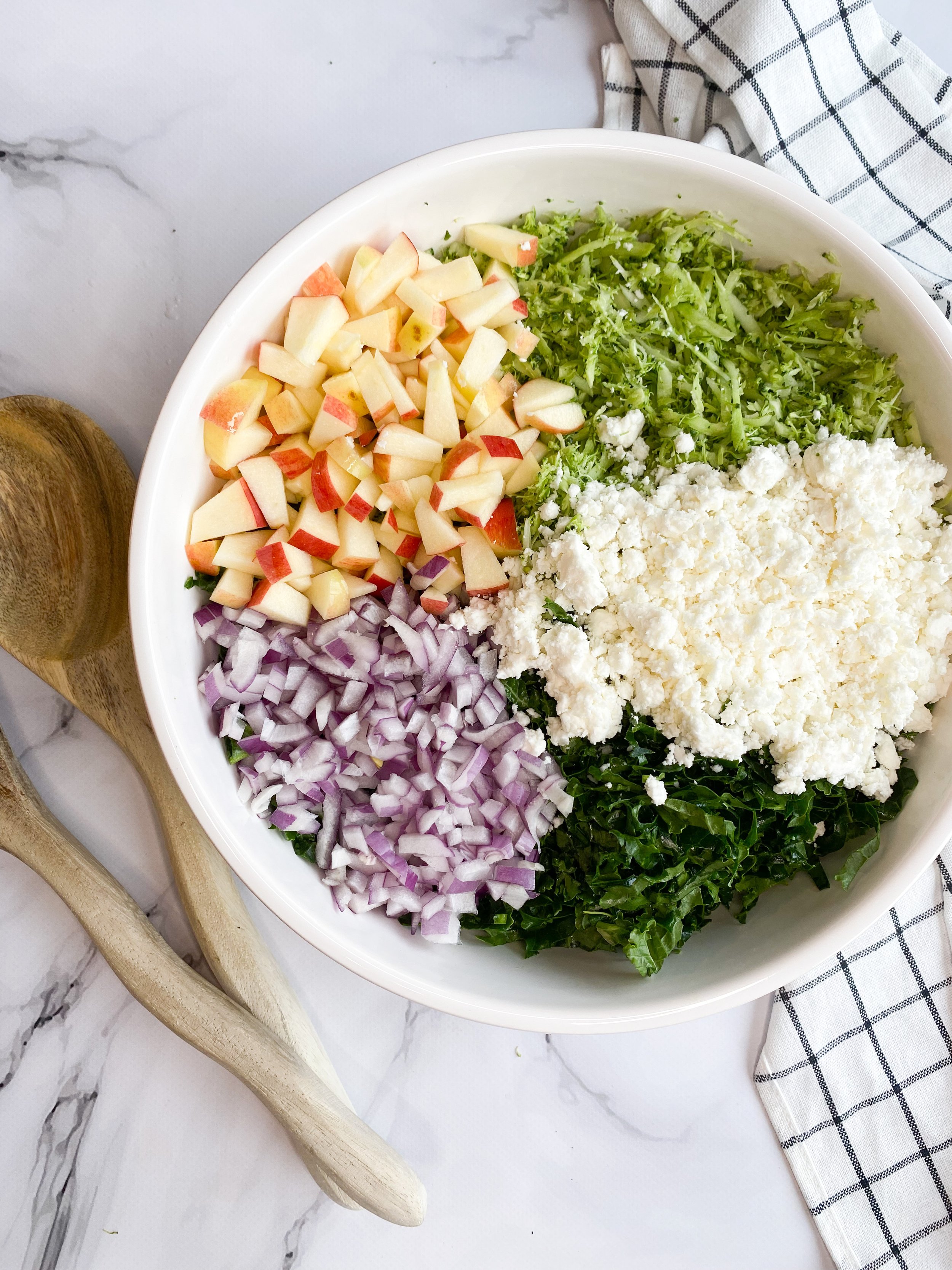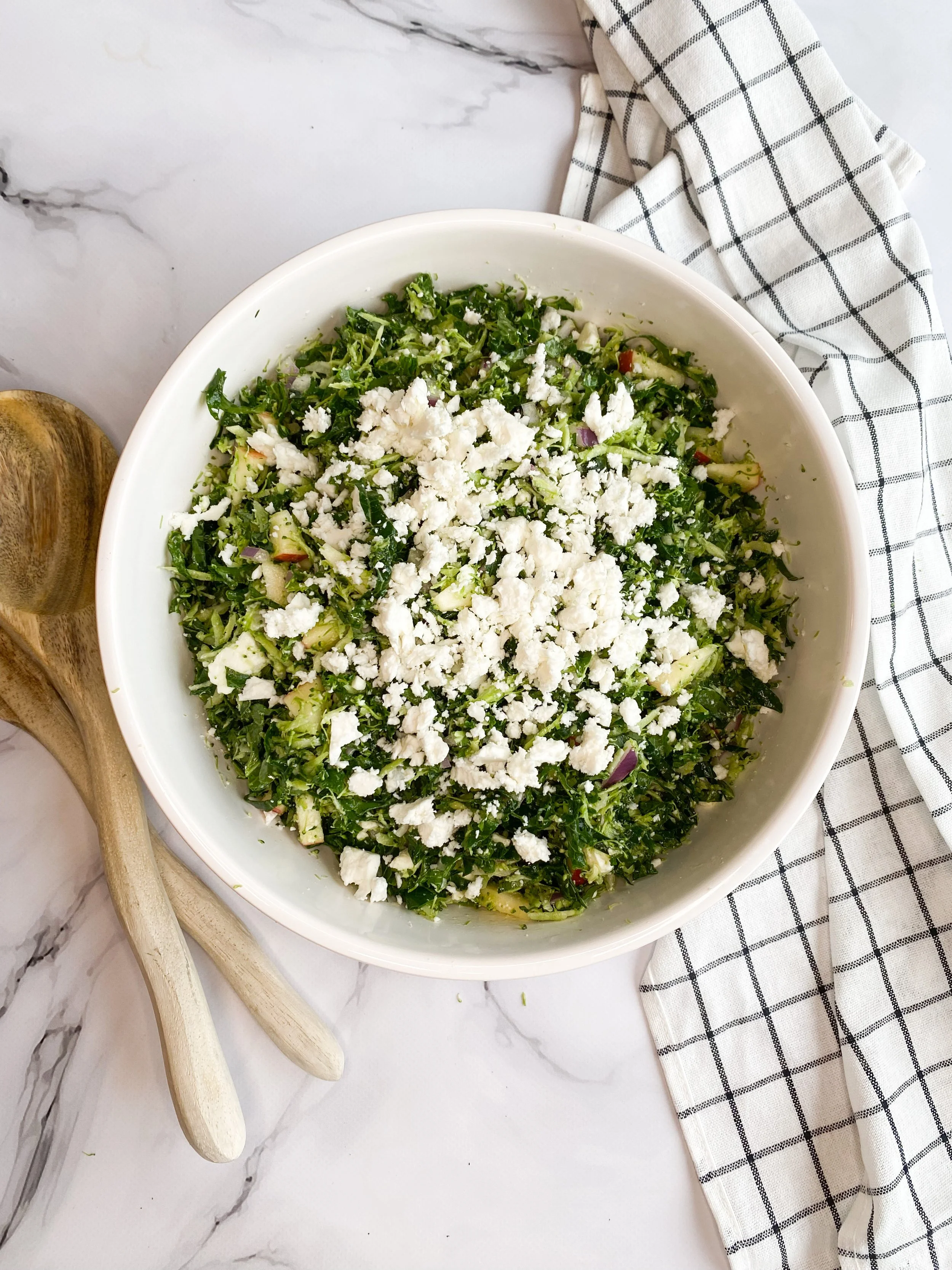Finally, the salad needed a little extra OOMPH to make it truly irresistible which is where the red onion and feta come in! I mean, who doesn’t love feta on their salad?